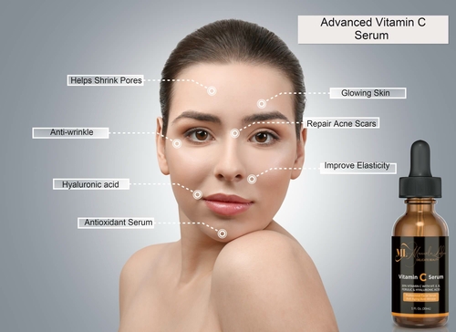 Vitamin C 20% L-Ascorbic acid also helps shrink pores, clear up acne, prevent breakouts, and repair the appearance of acne scars – leaving skin proudly radiating a healthier appearance that glows.