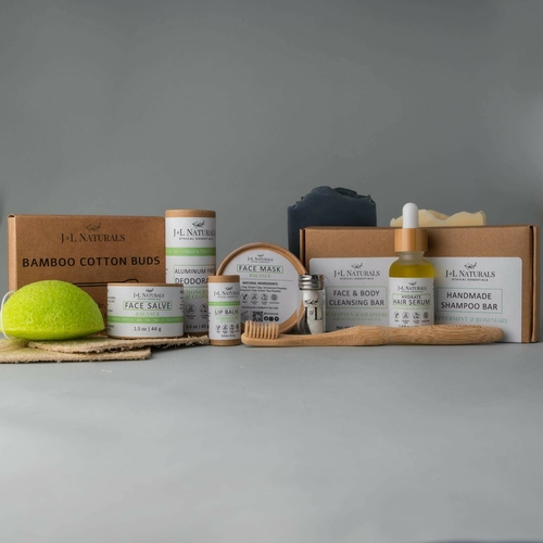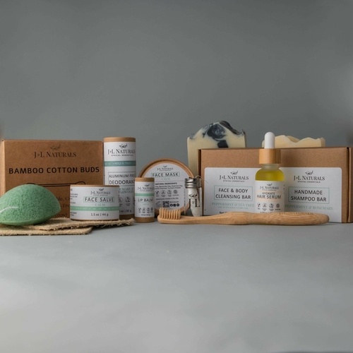 Includes: (1) Cleansing Bar, (1) Konjac Sponge, (1) Face Mask, (1) Face Salve, (1) Lip Balm, (1) Shampoo Bar, (1) Hair Serum, (1) Deodorant, (1) Bamboo Toothbrush, (1) Floss Kit, (1) Loofah Pad, (1) Box of Cotton Buds