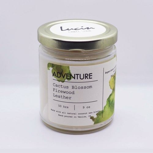 Our adventure candle is meant to spark that inner traveler that lives inside all of us. Our proprietary, signature blend of light coconut and hints of cool greens will spark your inner desire for adventure, while scents of leather and a base of smoky cedarwood and musk may remind you of being on the road, of tires on gravel, of motorcycle jackets and of smells not yet smelled, rooms not yet seen, scenery not yet admired.