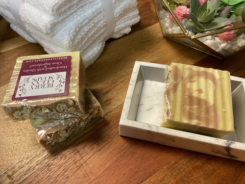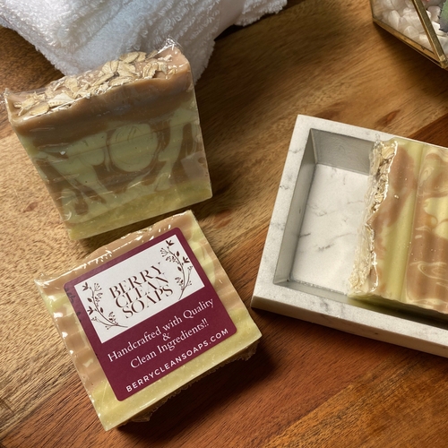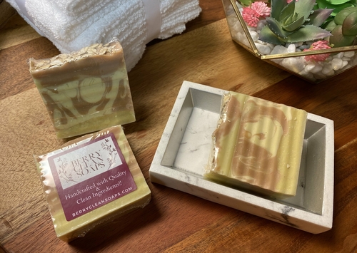 Enjoy the comforting scent of almonds and the exfoliating power of oatmeal. This cold process soap contains natural glycerin which helps moisturize the skin. Renew, relax and replenish your skin with this creamy lathering soap with medium size bubbles that will leave your skin feeling silky. Make shower or bath time even more fun!