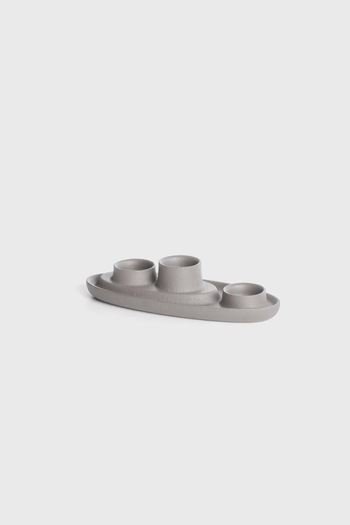 Aye Aye! is a family of rugged, round and bold cast iron candleholders inspired by the time of adventure and discovery, when the enthusiasm of the Industrial Revolution revealed the world to travellers and fortune seekers. The fleet is composed of four sizes – from a small tugboat with one funnel to a hefty steamship with four big ones. All navy-themed colours are available: red, blue, black and grey. Each funnel is designed to fit either a tea-light candle for cosy harbour lighting or a taper candle as a pillar of steam. Aye Aye! vessels can be combined in any size and number and create various themes that will be easy to adjust to different happenings and backgrounds.