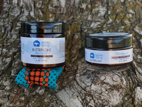 Our Butter Love is our original butter with some added butters that your skin and hair will LOVE!! It is made with raw shea butter, mango butter, cocoa butter, and cupuacu butter. It is made with the same quality of natural oils that will nourish, soften, and pamper your hair and skin.