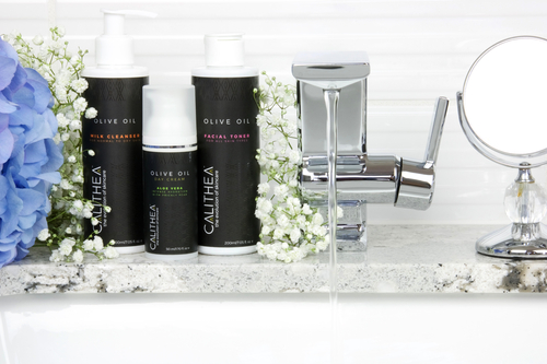 After cleansing, cultivate your inner beauty by applying CALITHEA’S organic Olive Oil Facial Toner to balance your skin’s pH level and avoid the moisture-stripping effects of harsh tap water.