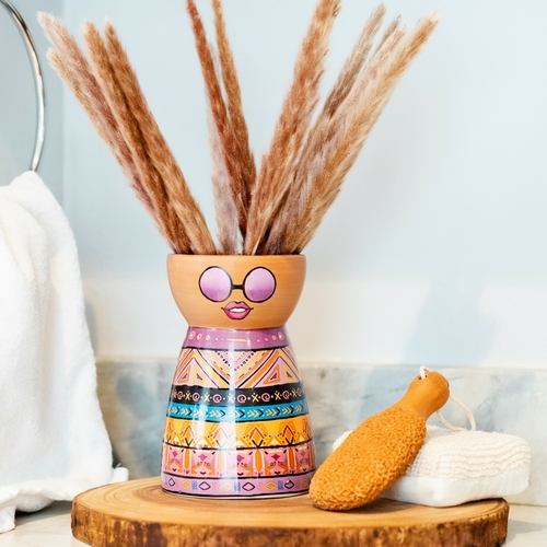 A quirky home decor piece. Add a funky hair-do to these face vases, such as fresh flowers, everlasting bouquet, pampas grass or even some wooden spoons on the kitchen counter. The options are endless.