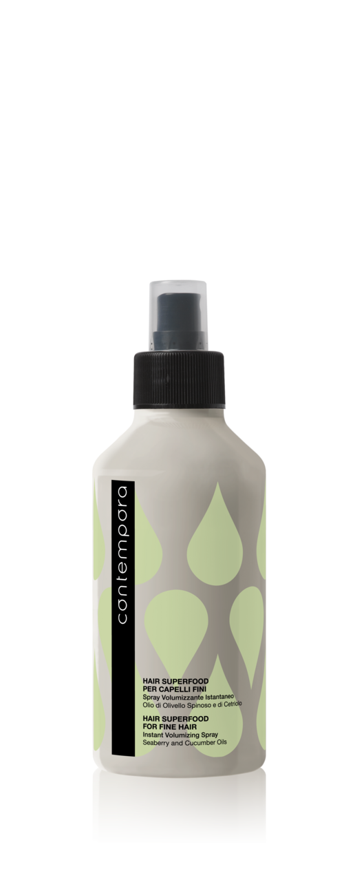 Contempora Volumizing Spray is enriched with Sea Buckthorn and Cucumber Oil .
