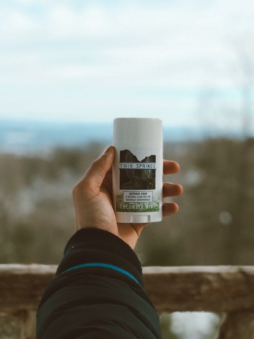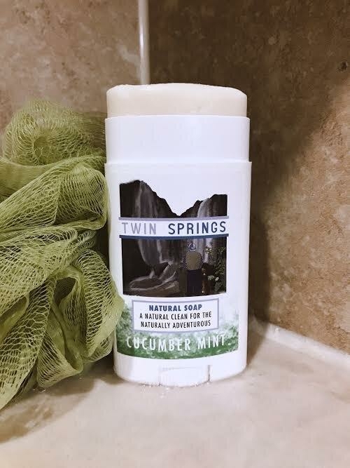 Enjoy your next adventure with Twin Springs Cucumber Mint Soap Stick! Handcrafted from scratch, Cucumber Mint includes saponified oils of Coconut, and Olive! We craft our soap into the travel container using the cold process approach, preserving the beneficial properties of these organic oils making our soap gentle, soothing, and super soft! Perfect for traveling, camping, backpacking, hiking, or any event when life is on the go! Enjoy the generous, bubbly lather wherever life may take you. It’s the perfect natural way to stay clean!