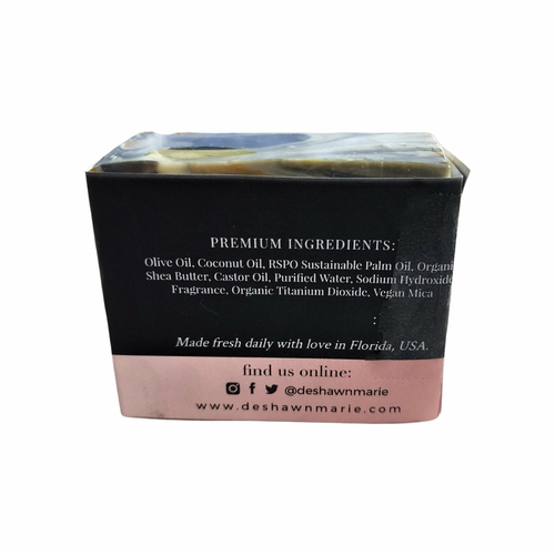 Gorgeous sandy beach white with gunmetal grey and rich yellow swirls. Scented with a sweet honeysuckle fragrance that is warm, herbal and floral. Smells like an evening walk with honeysuckle in the air.