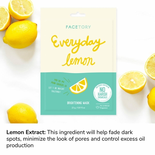 This sheet mask is an everyday solution without harsh chemicals! Everyday Lemon is a brightening mask that doesn’t contain harsh chemicals or artificial fragrances. Provide your skin with a radiance like no other!