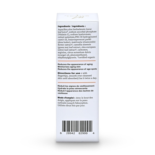 20% Vitamin C Anti-Aging is dropper Serum contains a combination of the key ingredients: Stay-C®, Retinol (Vitamin A), Vitamin E, Hyaluronic Acid and certified organic botanical extracts.