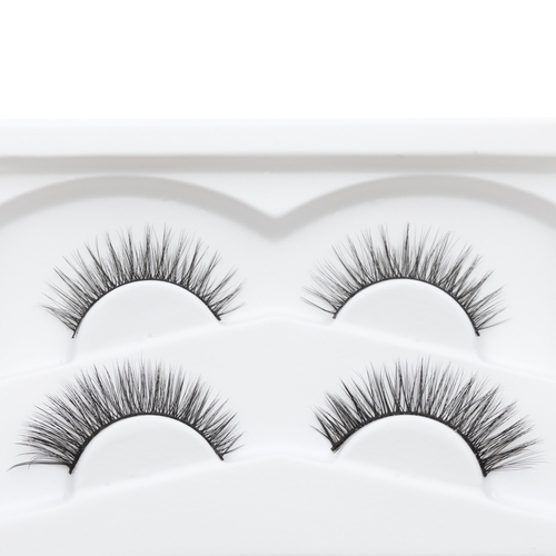 A set of double layer, criss cross lashes that instantly open your eyes and give a naturally smoky liner effect. The lash band is made of soft flexible material allowing the lashes to move easily with every eye shape. The expertly tapered hairs blend seamlessly into your natural lashes. The kit includes a precision applicator and an no-glue eyeliner.