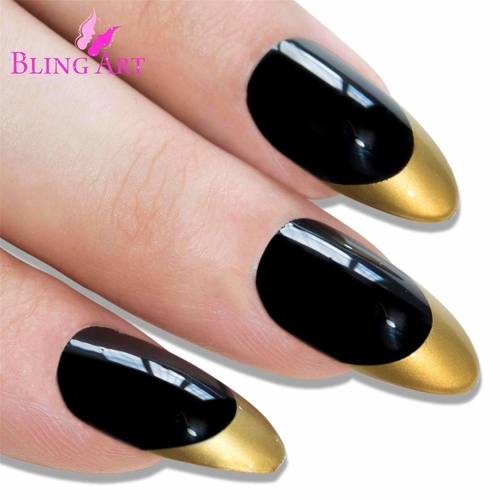 Dipped in Gold – Almond Stiletto Long – 24 Fake Nails, Free Glue, Nail File & Cuticle Stick.