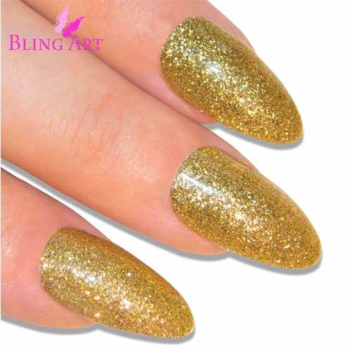 Bling Art Gel nails are ready to wear and will give you a stylish salon professional look in minutes. These nails are vibrant, shiny and rich in colour. To give them extra sparkle, we embed glitter before applying a top UV coat.