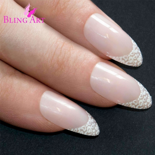 Decorate your fingertips with these beautiful, intricate, nails that are perfect for lovers of elegant feminine style. We created our Hearts and Nails Almond Stiletto tips for girly girls who are love romance, and with so many pretty hearts on the tip, you’ll find you can express your romantic side freely!