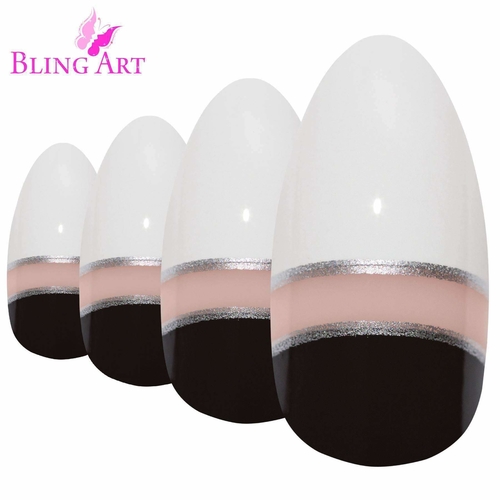 Black White – Almond Stiletto Long – 24 Fake Acrylic Nail Tips, Free Glue, Nail File & Cuticle Stick.