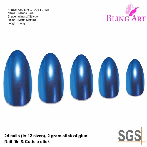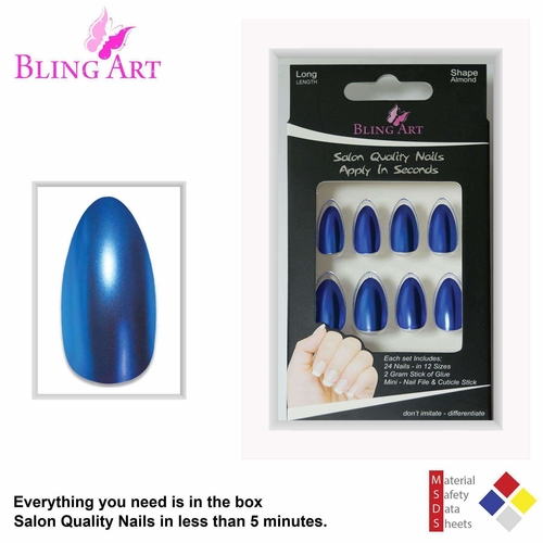 False Nails by Bling Art Blue Matte Metallic Almond Stiletto Fake