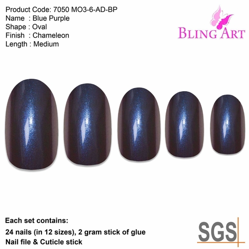 Blue Purple Chameleon Oval MediumBlue Chameleon – Oval Medium – 24 Fake Acrylic Nail Tips, Free Glue, Nail File & Cuticle Stick.