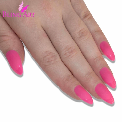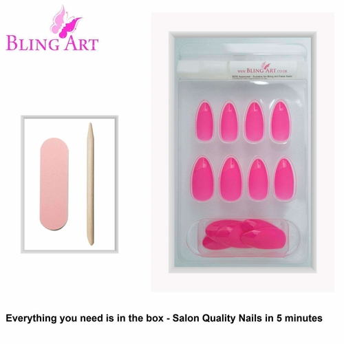 Matte Pink – Almond Stiletto Long – 24 Fake Nails, Free Glue, Nail File & Cuticle Stick.