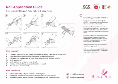 Buy with confidence – Our nails have been tested and are EU compliant, we use high quality virgin ABS Acrylic to make our fake nails and our glue is SDS approved.