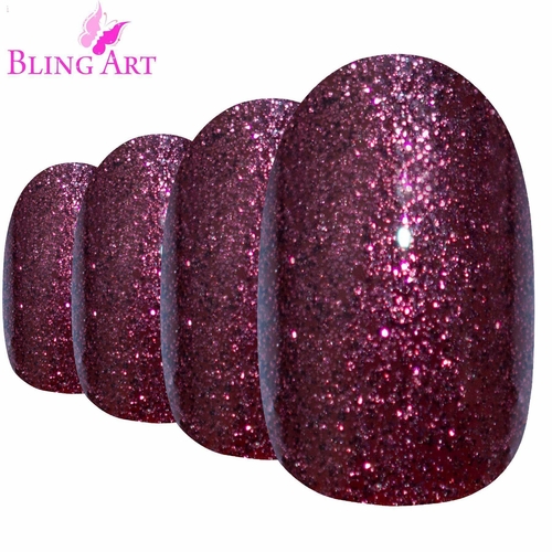 Bling Art Gel nails are ready to wear and will give you a stylish salon professional look in minutes. These nails are vibrant, shiny and rich in colour. To give them extra sparkle, we embed glitter before applying a top UV coat.