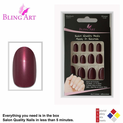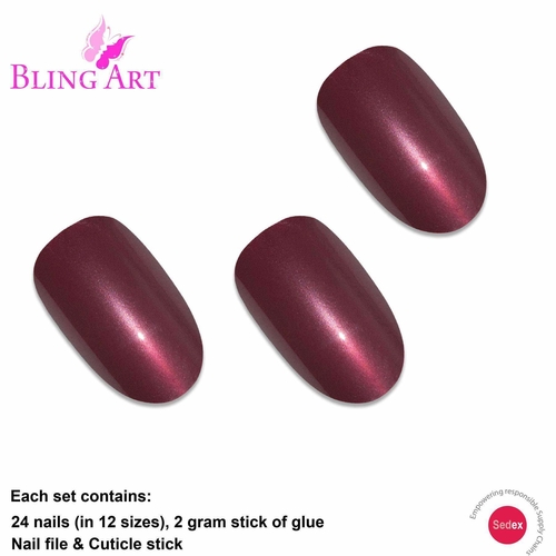 Sangria Red Brown – Oval Medium – 24 Fake Acrylic Nail Tips, Free Glue, Nail File & Cuticle Stick.