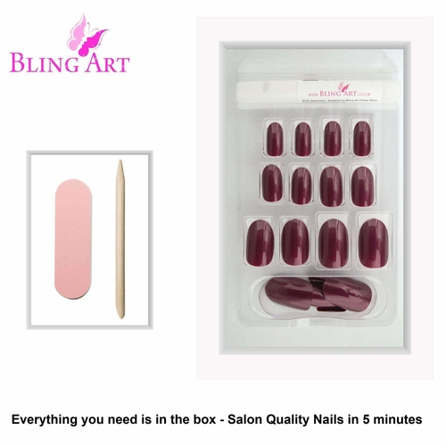 Everything you need to apply in minutes: Each set contains 24 nails (in 12 sizes), a 2 gram stick of glue, a mini nail file and a wooden cuticle stick.