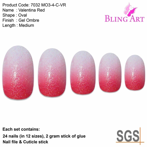 Red Gel Ombre Oval MediumValentina Red – Oval Medium – 24 Fake Acrylic Nail Tips, Free Glue, Nail File & Cuticle Stick.