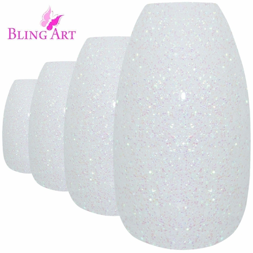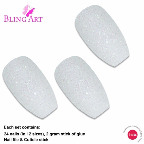 Pearl White – Ballerina Coffin Long – 24 Fake Acrylic Nail Tips, Free Glue, Nail File & Cuticle Stick.