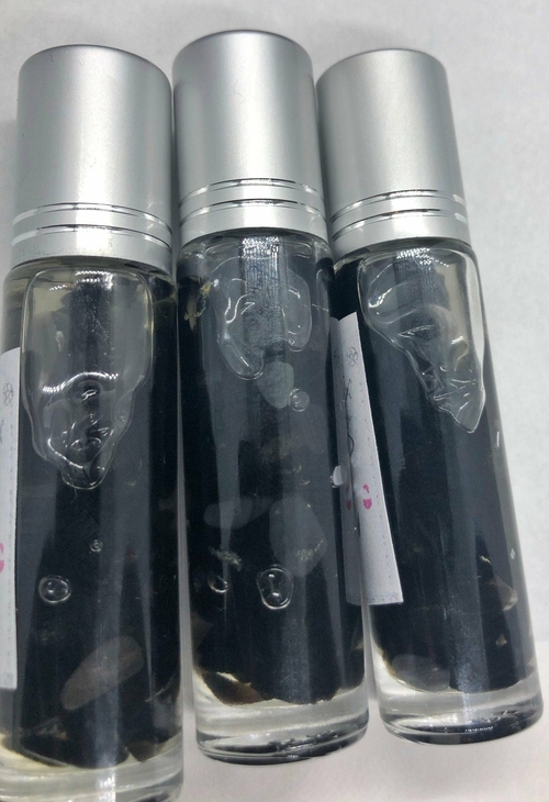 Or my customers favorite way in the past is by wearing it. It does smell so good. Oil is sitting in a tube filled with charged obsidian stones.