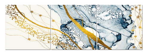 Glamour can be yours with this Golden Splendor Triptych from Nube Decor. Crafted from industrial grade 1/8″ acrylic, this three-panel art is durable, lightweight and ready to hang. Ideal for office or home, this art features a high-gloss finish, UV protection, and smooth, polished edges for a sleek modern look.