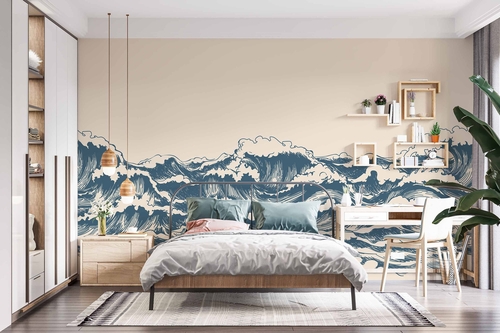 Elevate Your Interior with Waves of Happiness Blue Wallpaper. Are you ready to transform your living space into a work of art that seamlessly combines Japanese influences with a modern touch? Look no further than the Waves of Happiness Blue wallpaper. This exquisite design features rolling waves soaring through a restless sky, creating a stunning visual masterpiece that can elevate your home or office interior.