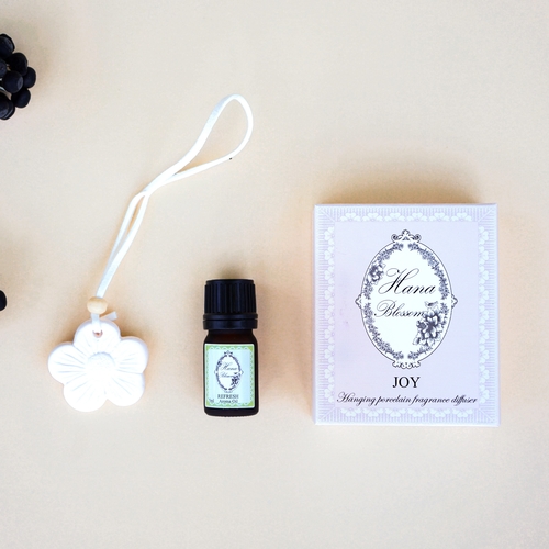 Fill the room or wardrobe with this hanging flower porcelain room diffuser. Come with refresh bergamot aroma oil blended with natural essential oil. Simply adding a few drops onto a flower porcelain and hang it anywhere in the room. It can be used as a Christmas tree decoration during festive season. The bird porcelain can be used with any of your favourite oil.