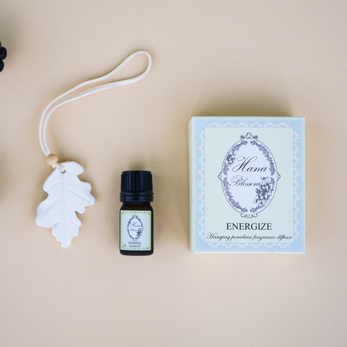 Fill the room or wardrobe with this hanging leaf porcelain room diffuser. Come with refresh bergamot aroma oil blended with natural essential oil. Simply adding a few drops onto a flower porcelain and hang it anywhere in the room. It can be used as a Christmas tree decoration during festive season. The leaf porcelain can be used with any of your favourite oil.