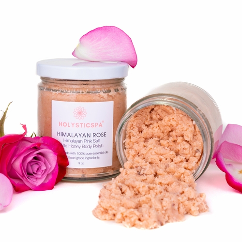 Ingredients: Coarse Himalayan Pink Salt, Organic Coconut oil, Organic Frankincense essential oil, Organic Rose essential oil, wild organic honey, organic dried rose petals.