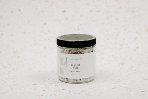 Inspired by the scent of romance, our Jasmine and Rose Bath Salt turns a mundane bath into an escape at a ritzy destination spa. Our bath soakĀ combines epsom salt to detoxify and cleanse skin, while relieving tired muscles. Natural oils like sweet almond oil keep the skin supple and conditioned while delivering a sweet, soothing scent to relax and restore. Just add to running water and soak!