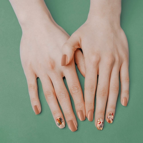 - 28 self-adhesive Nail Polish Strips in different sizes.
