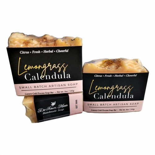 Soft Calendula and zesty Lemongrass make a great pair in this beautiful Calendula topped soap. A perfect Summer’s day soap, clean, fresh, uplifting and energizing. Natural and pure it produces a very rich lather making this soap an excellent all over body soap or shave bar.