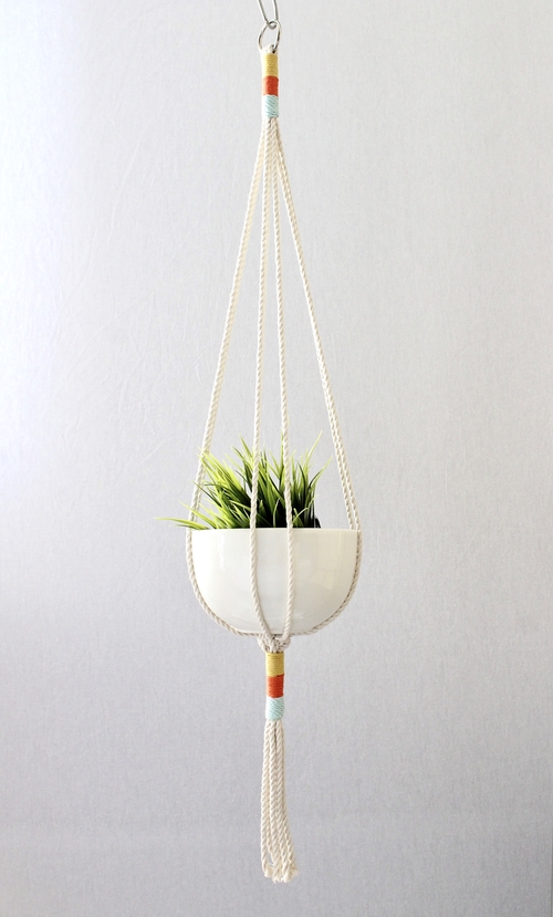 Show your plants some love with this modern, vintage-inspired macrame plant hanger. Simple, yet meticulously hand-crafted, this beauty would be equally at home gracing a living room corner, or brightening up an office. Designed with 100% natural cotton rope sourced locally within Ontario, this lovely plant hanger is a stylish way to showcase your favorite plants year-round. Suitable for indoor use, and also a thoughtful gift for your friends and family who are inspired by nature.