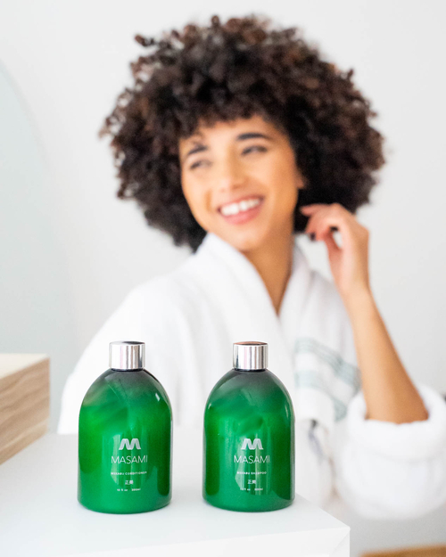 Follow with MASAMI Conditioner, Styling Cream, and Shine Serum.