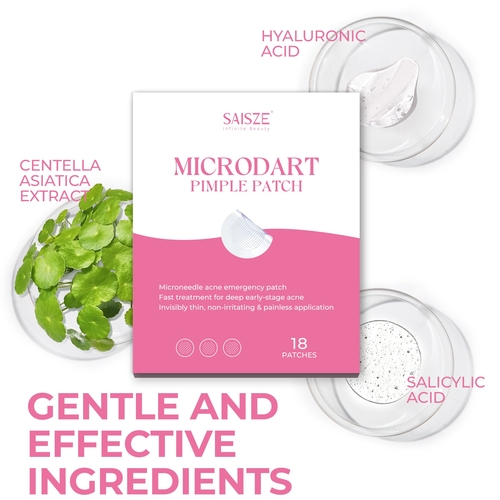 Microdart Pimple Patch covers shrink early stage zits before they surface. Now formulated with powerful acne-clearing Salicylic Acid, Centella Asiatica Leaf Extract, and hydrating Hyaluronic Acid, each microdart pimple patch delivers gentle yet effective acne-fighting ingredients deep below the surface to reduce excess oil and sebum while keeping your skin moisturized.
