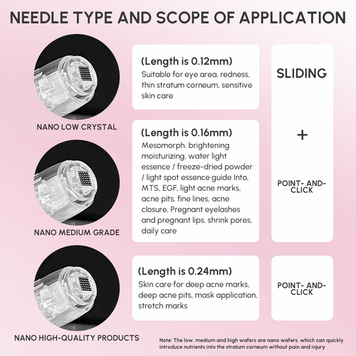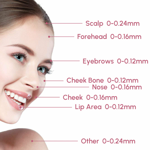 The microneedle pen comes with 7pcs individually packaged cartridges, 5pcs of which are 0.12-mm, 5pcs are 0.16mm and 2pcs are 0.24mm. These cartridges are disposable and for one-time use. It is very convenient to replace each time.