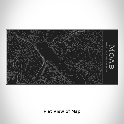 Custom engraved map of Moab, Utah and coordinates on 17oz double walled insulated stainless steel bottle in matte black. Measurement – 4in x 4in x 11in.