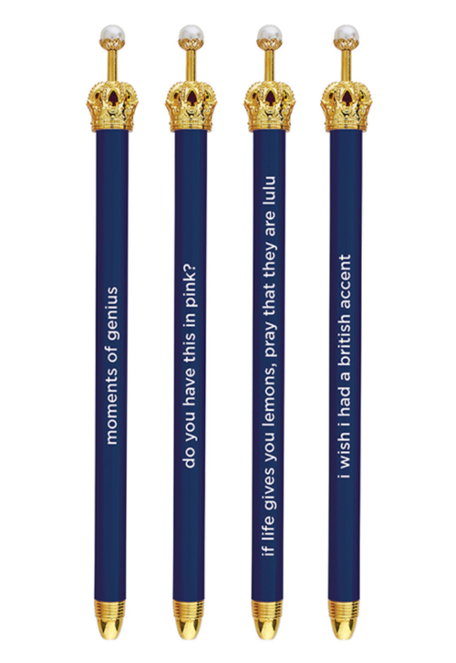 Spruce up your desk with these glamorous crown top pens. Each set comes with four different positive phrases that will brighten your day and mood.