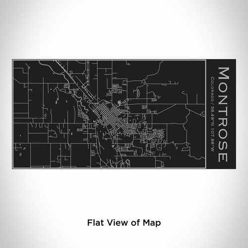Custom engraved map of Montrose, Colorado and coordinates on 17oz double walled insulated stainless steel bottle in matte black. Measurement – 4in x 4in x 11in.