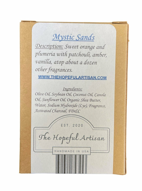 Ingredients: Olive Oil, Soybean Oil, Coconut Oil, Canola Oil, Sunflower Oil, Organic Shea Butter, Water, Sodium Hydroxide (Lye), Activated Charcoal, Fragrance, FD&C