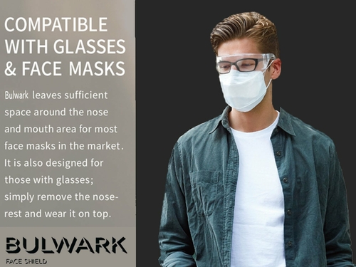 Our face shield is the perfect portable solution to not only keep your mouth and nose protected but your eyes too! You can wear the face shield just like you would a pair of glasses, adding comfort and style to your daily protection. And when you reach up to touch your face by habit, Bulwark reminds you to break the habit and stay!