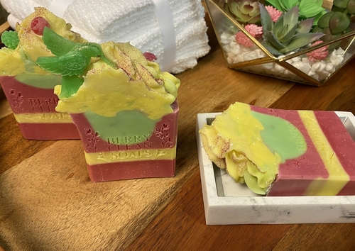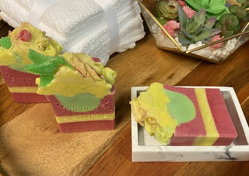 Enjoy the fresh scent of Apples with this yummy Orchard apple fragrance soap. This cold process soap contains natural glycerin which helps moisturize the skin. Renew, relax and replenish your skin with this creamy lathering soap with medium size bubbles that will leave your skin feeling silky. Make shower or bath time even more fun!