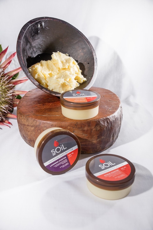 SOiL’s Uganda Shea Butter has a soft and creamy consistency that protects and nourishes dry, damaged skin. Utilizing the raw Shea Butter, SOiL has developed a range of scented butters adding a blend of essential oils for therapeutic and cosmetic purposes.