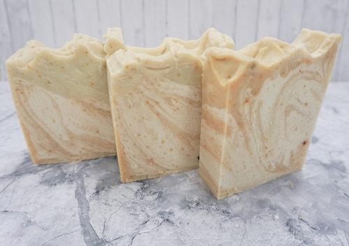 Ingredients: Sodium Olivate, Sodium Almondate, Sodium Cocoa butterate, Sodium Sunflowerate, Sodium Cocoate, Sodium Castorate, Glycerin, Aqua, Citrus Aurantifolia (Lime) Oil, Kaolin, Avena Sativa,Limonene, Linalool, Titanium Dioxide (CI 77891), Citral, Geraniol, Linalool