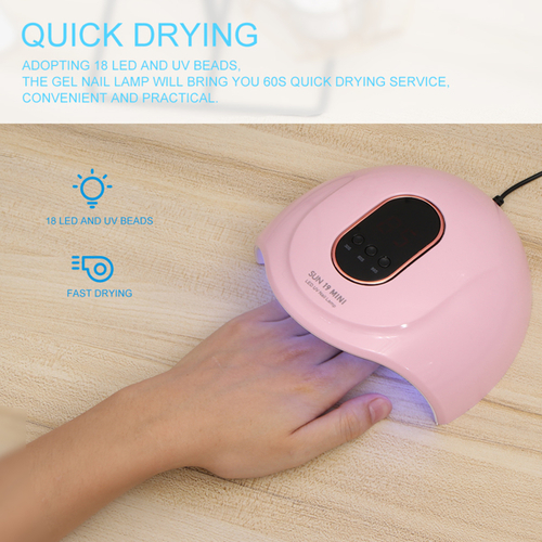 Durable material Made of high quality flame retardant ABS material, wear resistant and durable, safe and corrosion resistant, reliable to use for long time. Quick drying Adopting 18 led and UV beads, the gel nail lamp will bring you 60s quick drying service, convenient and practical. Intelligent timing function Three timing modes, including 30s, 60s and 90s, free for you choose according to the practical situation.