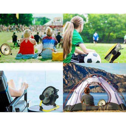 Ideal for Outdoor:The portable and waterproof design makes this rechargeable fan be suitable for outdoor use, such as BBQ, camping, fishing, outdoor sports etc.A sturdy structure made of metal fitted in harsh environments.